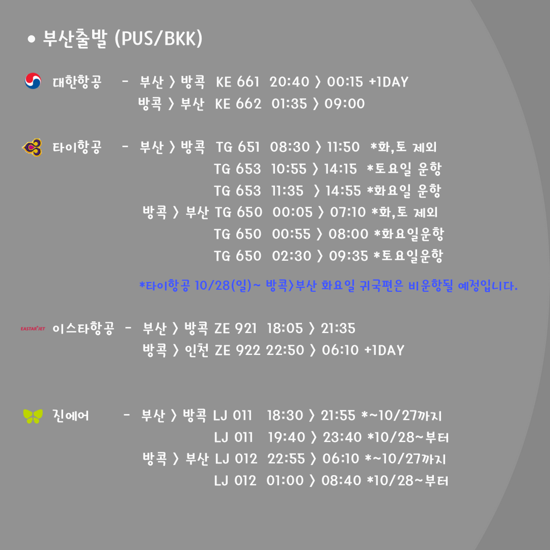 방콕항공스케줄 총정리 (지방출발) #2 2018년 10월 16일 2:45 오후 로맨틱방콕 2. 태국여행정보 no comment #특가항공권 #해외출발항공권 #다구간항공권 #문의 #로맨틱방콕 #맞춤투어 #오직나만을위한특별한여행 Tel. : 070-8878-3318 Kakao : Romanticbkk E-Mail : machum-tour@naver.com #항공을 잘하면 여행이 싸집니다. Tags:#대구출발, #방콕항공권, #방콕항공스케줄, #부산출발, #제주출발, #지방출발, 로맨틱방콕, 한빛투어아시아지점