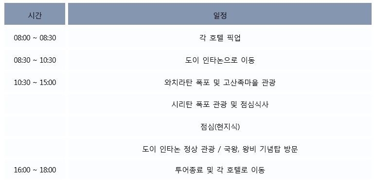 *치앙마이 시내지역 호텔 픽업만 가능하며, 외곽지역은 추가 픽업비용이 발생할 수 있습니다.