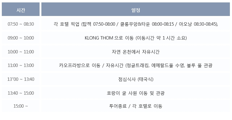 에메랄드풀, 온천, 호랑이산원 등, 끄라비의 또 다른 매력을 체험을 할 수 있는 상품입니다.
