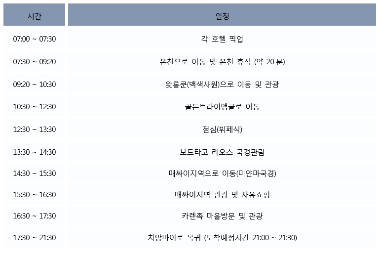 고산족 마을(롱넥마을)등을 하루에 다녀올 수 있는 일정입니다.