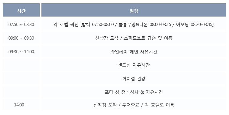 끄라비 4섬 투어는 아름다운 프라낭비치를 비롯하여 하루 동안 끄라비의 대표적인 섬들을