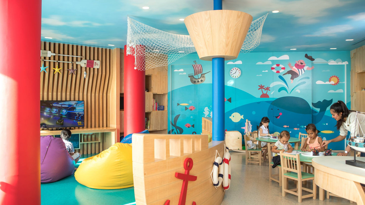 수영장은 성인풀, 가족풀, 키즈풀, 월풀 등 다양한 섹션으로 이루어져 있으며,