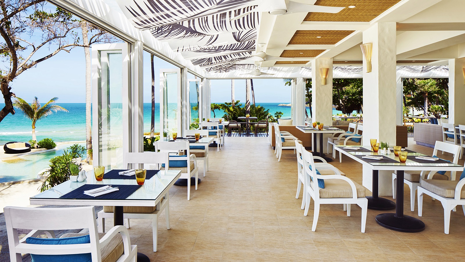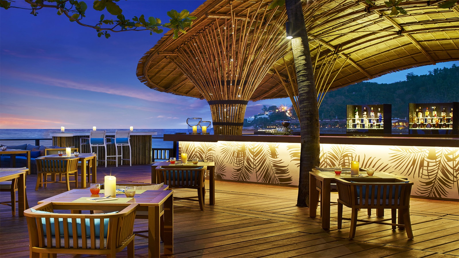 *The Blue Monkey Bar(International and Pan-Asian)의 해변 테라스에서 칵테일을 즐길 수 있습니다.
