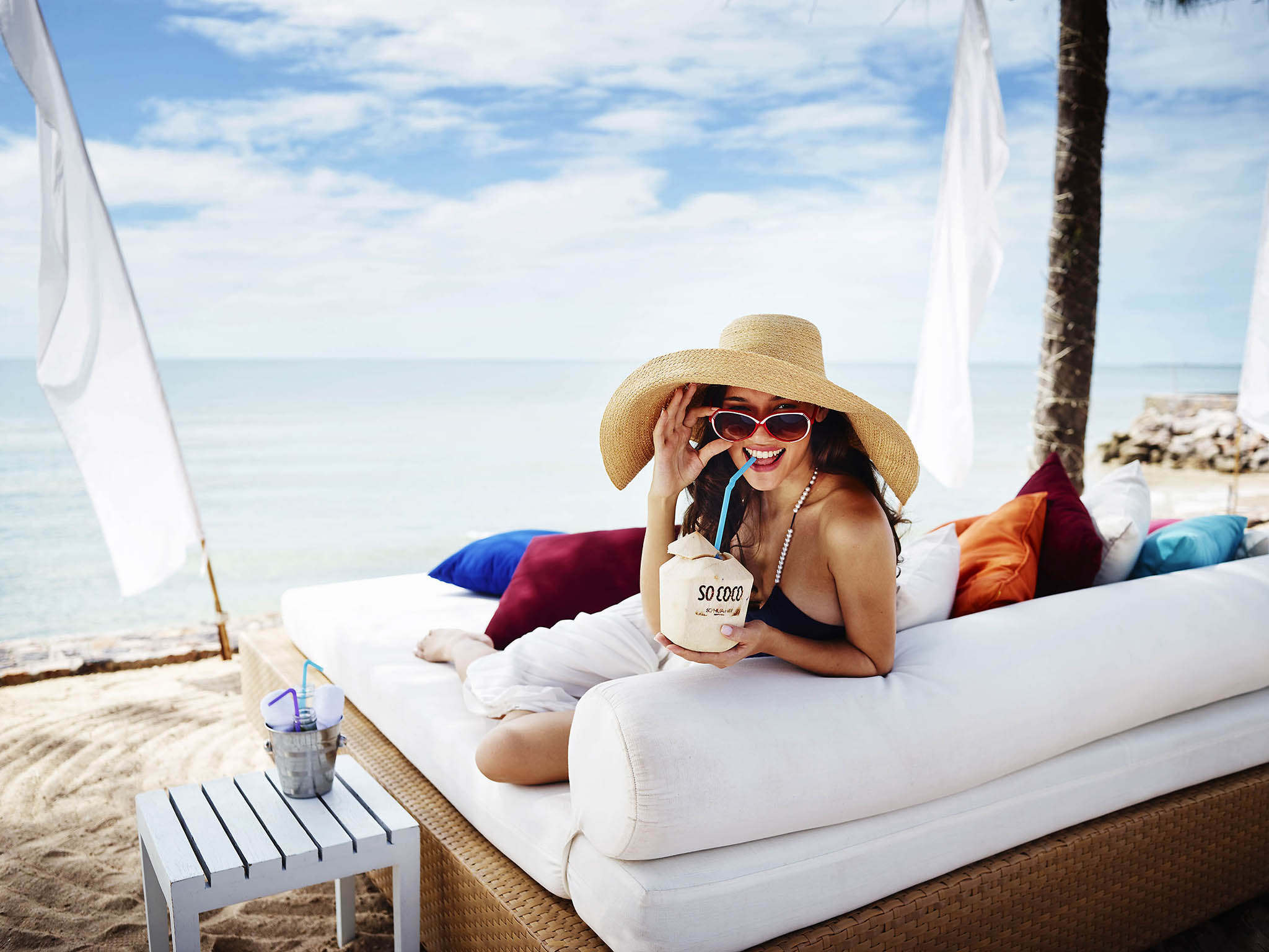 조용하고 평화로운 분위기의 전용 비치와 감각적이고 세련된 인테리어가 인상적이며