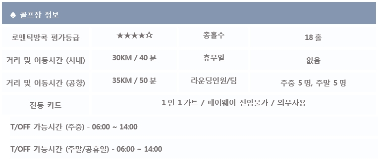 *단체 또는 골프텔을 이용하시는 분들께서는 예약 전, 로맨틱방콕 담당자에게 문의바랍니다.