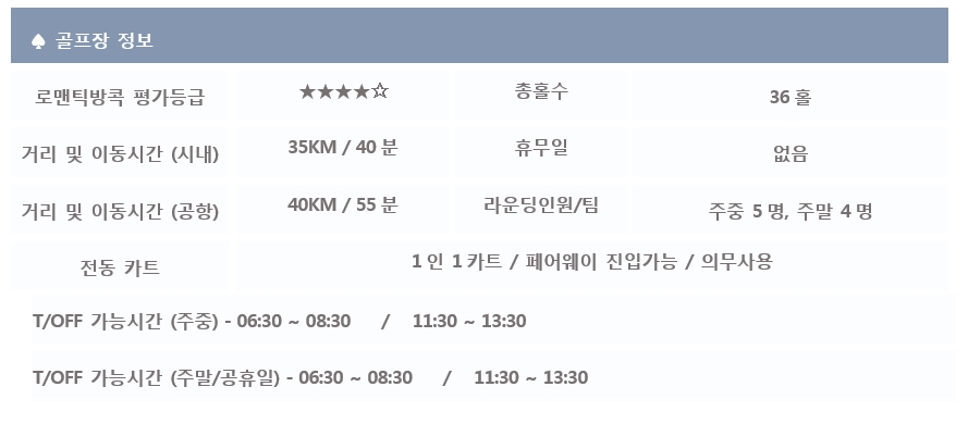 *단체 또는 골프텔을 이용하시는 분들께서는 예약 전, 로맨틱방콕 담당자에게 문의바랍니다.