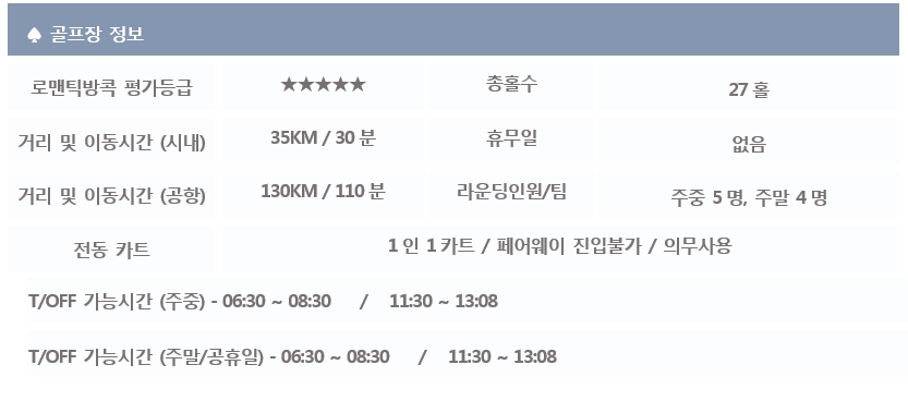 *단체 또는 골프텔을 이용하시는 분들께서는 예약 전, 로맨틱방콕 담당자에게 문의바랍니다.
