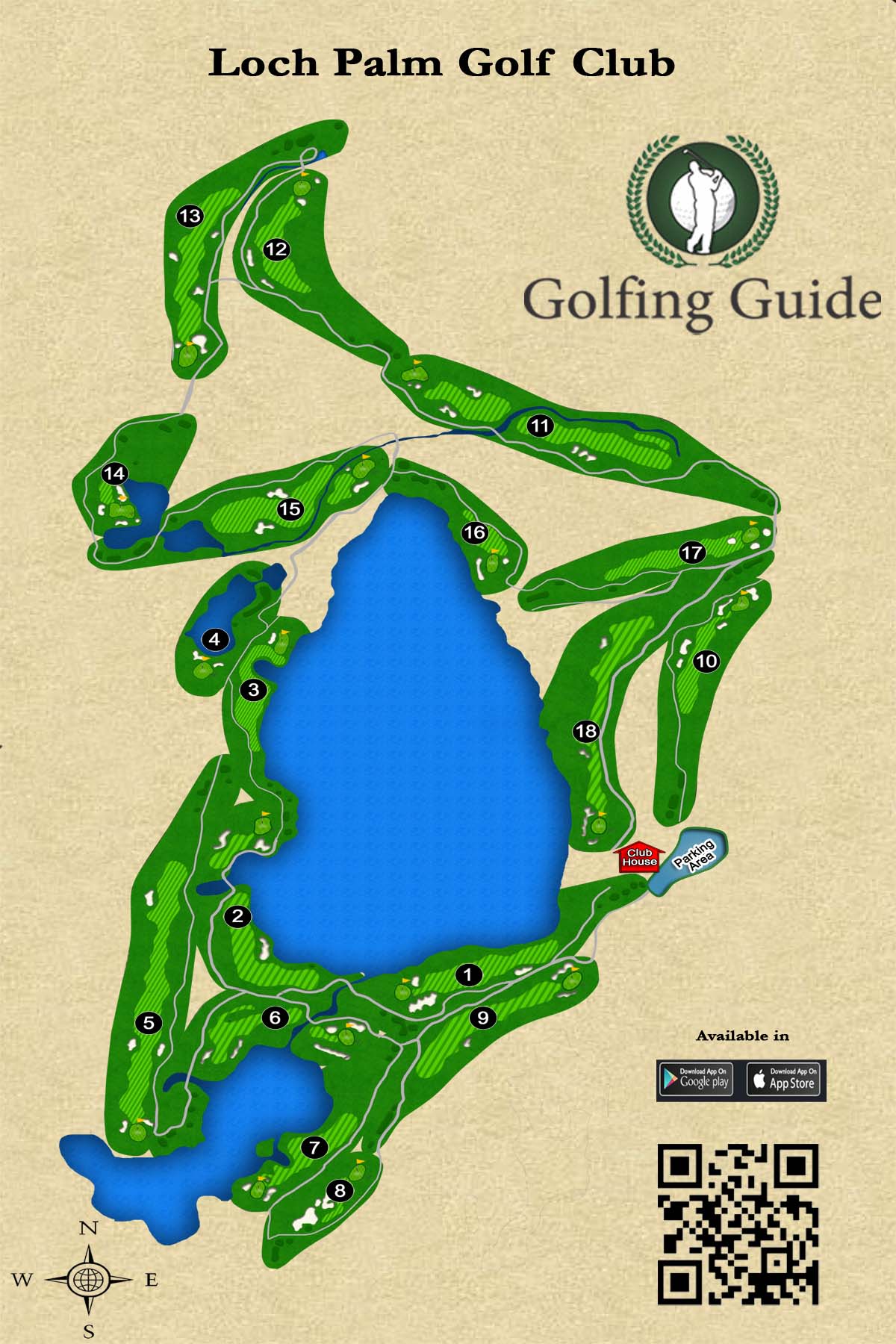 페어웨이는 48 에이크의 크리스탈 호수와 12에이크의 작은 호수로 둘러싸여 있습니다.