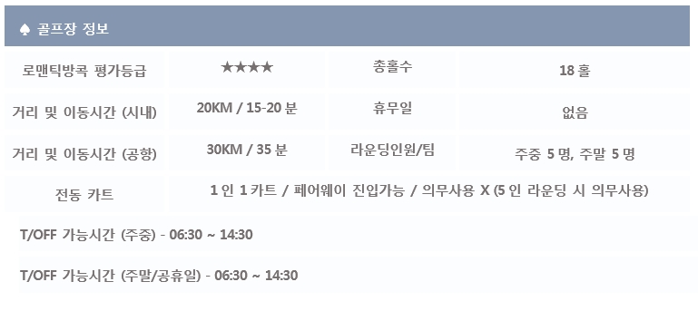 *단체 또는 골프텔을 이용하시는 분들께서는 예약 전, 로맨틱방콕 담당자에게 문의바랍니다.
