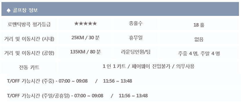 *단체 또는 골프텔을 이용하시는 분들께서는 예약 전, 로맨틱방콕 담당자에게 문의바랍니다.