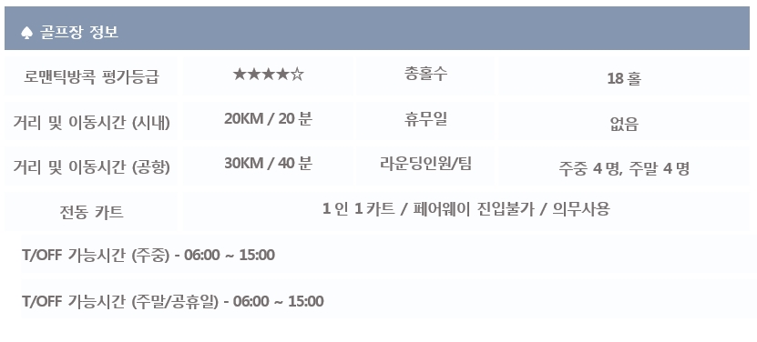*단체 또는 골프텔을 이용하시는 분들께서는 예약 전, 로맨틱방콕 담당자에게 문의바랍니다.