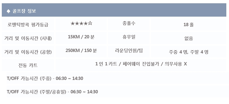 *단체 또는 골프텔을 이용하시는 분들께서는 예약 전, 로맨틱방콕 담당자에게 문의바랍니다.